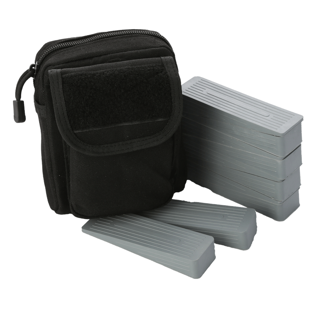 The Matter Wedge is a zipped canvas pouch that clips to your belt and holds ten rubber wedges (door stops). They’re the same wedges many operators already use, but the pouch makes them quicker to access and easier to manage. Because the pouch is designed for a rapid visual check, you can confirm at the end of a capture that no wedges are left behind — saving time and preventing lost kit.
